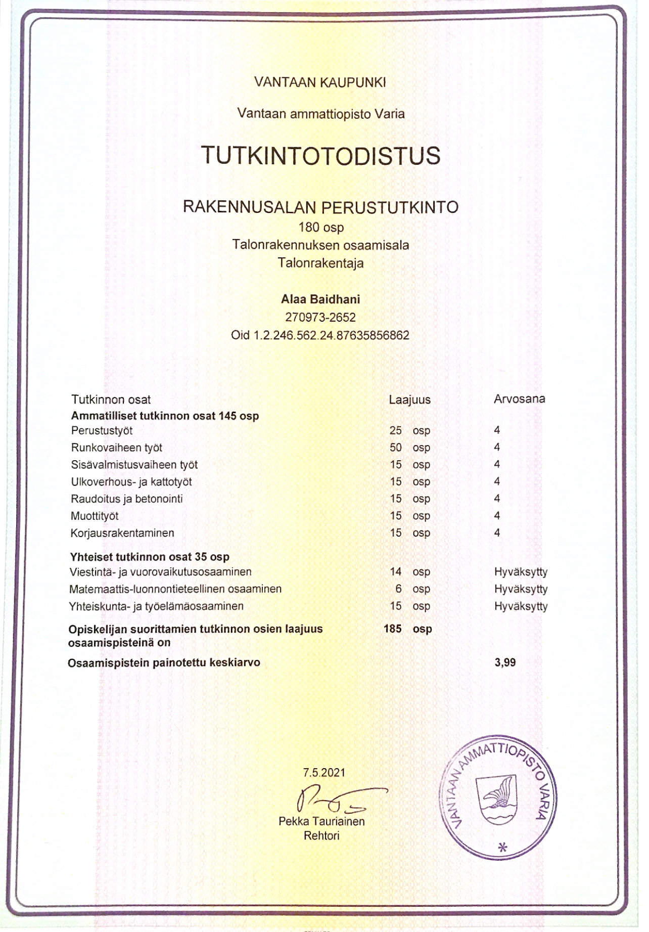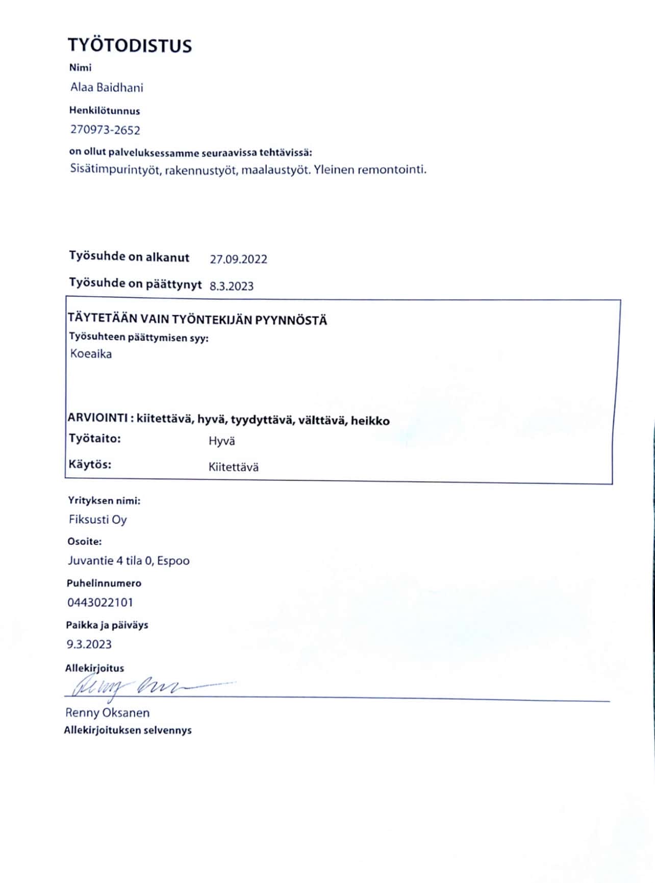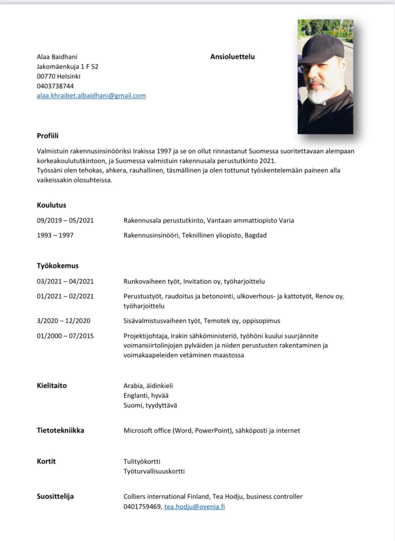 Olen rakennusmies, minulle on 3 vuotta kokemus .
